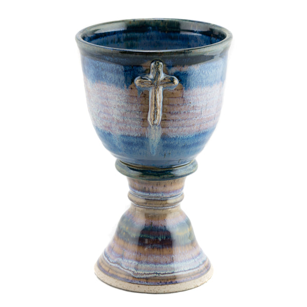 This gorgeous stoneware (ceramic) chalice features an embossed image of the old rugged cross.